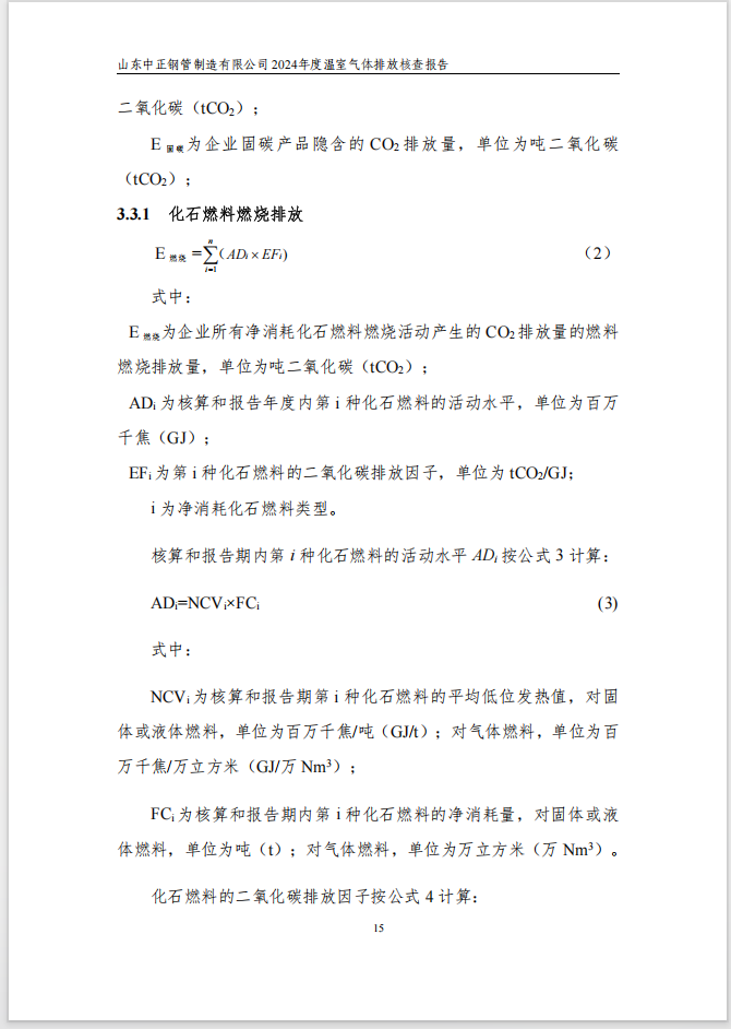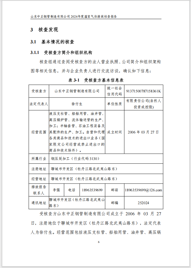 【概要描述】山東中正鋼管制造有限公司2024年度 溫室氣體排放核查報告